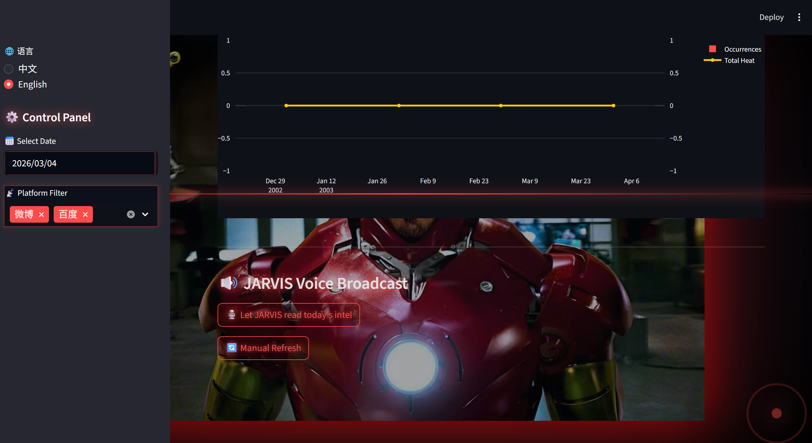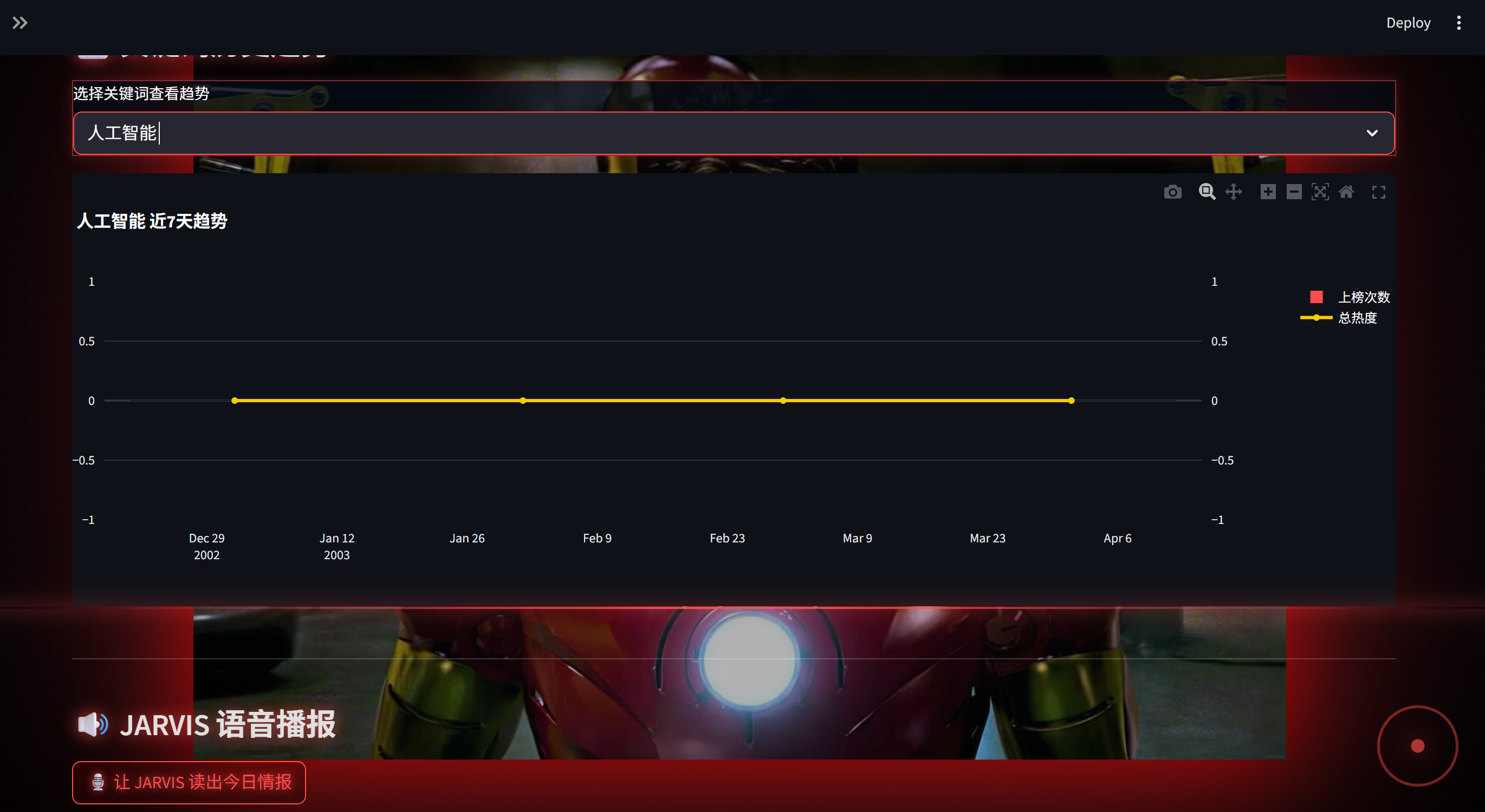 - 内置语音播报:点击按钮,JARVIS 亲口念出当天热点