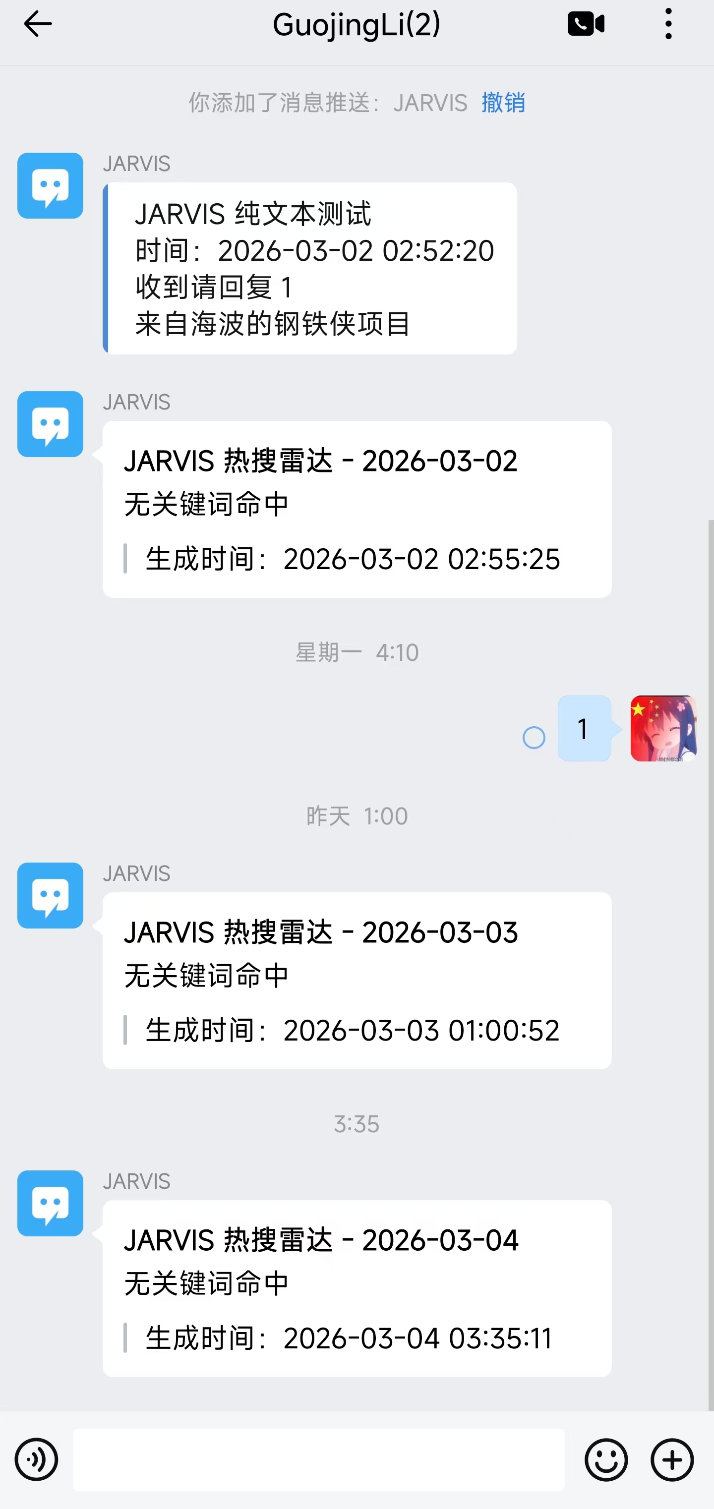 - 但JARVIS依然在线:就像电影里那样,即使暂时没有信号,JARVIS也永远在后台守护,一旦捕捉到你的关注词,它会第一时间推送到你手中。你可以换成你喜欢的行业动态、明星赛事,它就会为你精准追踪。