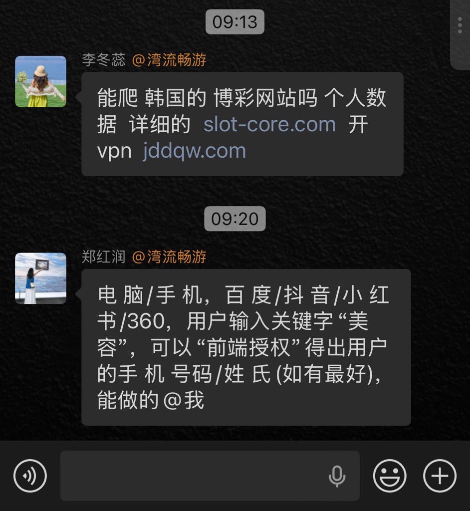 这里提到“”项目抢单” 没猜错的话会被拉进微信或者企业微信群 然后极有可能看到类似图中的需求 需求基本将技术当魔法看待 天马行空 随心所欲 从不考虑可行性 甚至有灰黑产 待跑作业 游戏外挂...... 有兴趣可进去看看 涨涨见识