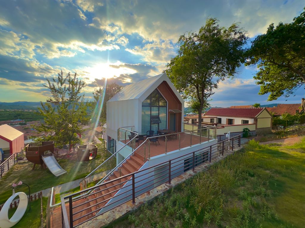 这里为数字游民打造的烟台山居工作站——悦樱乡居,隐于“中国大樱桃第一镇”张格庄的车家村。这里距千年古刹峆㠠寺仅350米,禅意与山景触手可及,环境私密清新,是小众的宁静所在。